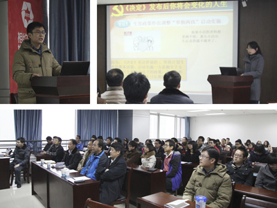 12月18日下午,地空学院党总支在教学行政楼706会议室开展党的十八届三中全会精神学习报告竞赛活动,来自学院六个学生党支部的14名同学进行了汇报交流,用自己的语言来解读和宣传十八届三中全会精神。学院党总支书记刘斌、副院长黄建华、校党委宣传部汪银生、校党委学工部付淼四位老师组成评审组对参赛同学地报告进行了评定。学院学生工作负责人吕冰涛主持了本次竞赛活动。学院全体学生党员参加了报告会。