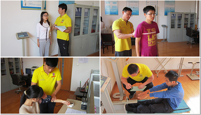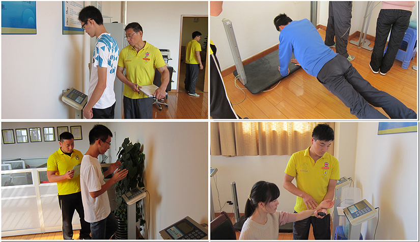 第十六届支教队的8位队员在健身房教练的指导下,分别测试了身高、体重、三围等身体基本指标和心律、肺活量、握力、平衡性、反应灵敏度、柔韧性等身体健康指标这两部分内容。健身房教练耐心指导,支教队员积极配合。经过一个多小时的测试,全部8名支教队员认真有序地完成了体能测试。