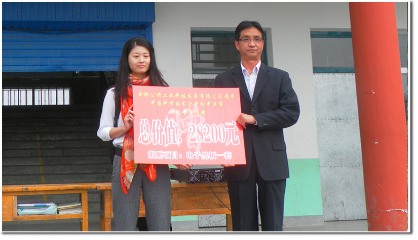 9月中下旬,合肥工投工业科技发展有限公司向我校研究生支教团支教服务地进行爱心助学,捐赠了价值五万六千余元的教学设备。此次捐赠的设备为两套电子黑板,分别捐赠给宁夏回族自治区中卫市兴仁中学与西安中学,为这两所中学的多媒体教学工作提供了非常大的帮助。