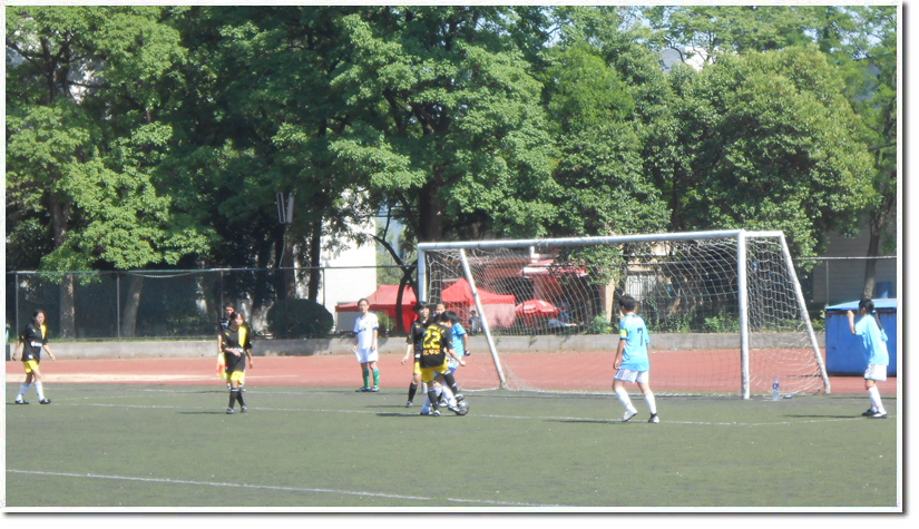 工院化院则节奏较快,防守重点相对压向禁区,双方均有快速的传切配合。双方的射门大都无法摆脱对方后防线的拦截。化院一队在下半场的进球也是通过快速的传球,利用不停的跑动甩开防守队员拉出射门空间,破门得分。