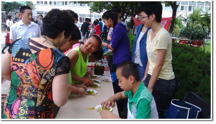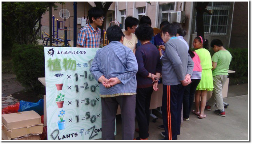 这两个活动都是中国科学技术大学“五月风科技文化节”系列活动中的优秀子活动,因为与世界环境日的主题契合度很高,所以被引入此系列活动。活动当天现场秩序井然,居民的参与热情很高。在“植物大换僵尸”的活动现场,我们可以发现很多居民都拿出自己家里的废报纸、易拉罐、塑料瓶等废品换取活动组织方准备好的各类精美盆栽、花盆、植物种子等,这样“变废为美”的行动不仅让这些废品找到合理的去处,而且为居民的生活中带去一抹绿。而在“叶脉书签制作”的活动现场我们能看到这个活动受到了小区孩子们的热烈欢迎。孩子们在制作环保书签的过程中,既能感受到了制作过程中的乐趣,又能强化环保的理念,这样就能在他们很小的时候就养成环保的意识,让环保的理念扎根他们的心灵。值得一提的是该活动还吸引到了外籍朋友的参与,他们对本活动的热情支持让我们感受到了保护我们的地球母亲是我们全人类共同的义务与责任。