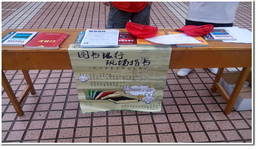 活动现场,虽然天气炎热,但还是有热心的学长主动将书送来,这让志愿者们十分感动。大部分大四的学长选择了登记他们的宿舍号,由我们晚上上门收取旧书。活动中,许多前图书银行以前的部员也热心参与,并且和志愿者们交流经验。谈起图书银行,他们感慨良多,表达了内心对图书银行真挚的感情。学长们很支持我们的活动,也希望我们能再接再厉,为将图书银行建设成更优秀的组织而努力!