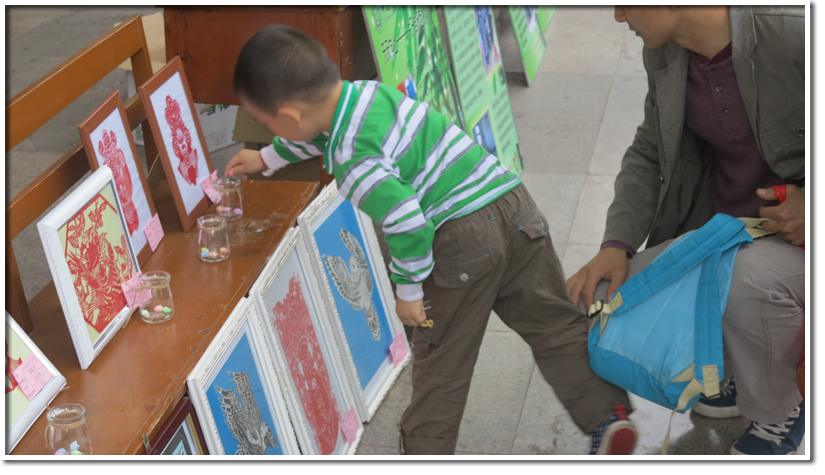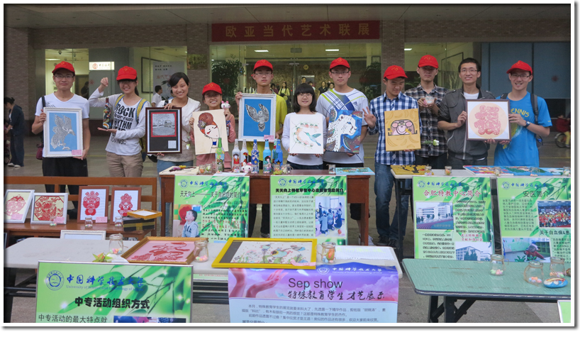 5月6号、7号,芳草社特教部“特殊教育学生才艺作品展览”在东活、西活广场顺利开展,为期两天的现场活动完美落幕,接下来将在东区现代艺术中心进行为期一周的展览。此次展览共87幅作品,包括剪纸、油画、素描、书法、啤酒瓶艺品、石头艺品等等。这些作品全部出自于合肥市特殊教育中心(简称中心)、安徽省特殊教育中专(简称中专)两所学校的学生之手。
