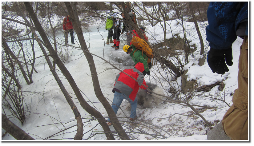 1月24日,我校科考协会4名同学抵达中国地质大学(北京),与上海交大、西安交大、武汉大学的同学们一起展开训练。冬训地点在北京怀柔天池峡谷。冬季的天池峡谷,寒风阵阵,滴水成冰,山上覆盖着厚厚的白雪,夜间温度可达零下20摄氏度。在训练中,我们的队员毫不畏惧寒冷与艰苦,善于学习,勇于实践,不仅出色地完成了各训练项目,更是与一同训练的其他各高校的同学们结下了深厚的友谊。通过与其他几所高校同学的交流,拓展了同学们的知识,对于户外类社团的模式也收获了许多新的认识,促进了我校学生科考协会的对外交流与发展。