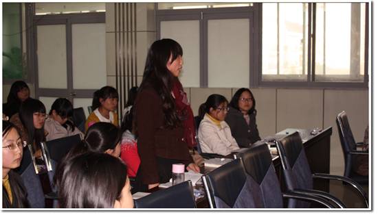 会上,丁丽莉老师还不时为师兄们的讲解作补充,使同学们对目前的学习与未来的就业有了一个更为清晰的认识与规划。