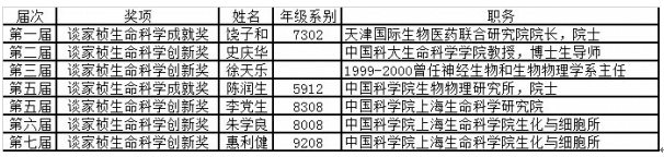 自2008年第一届谈家桢生命科学奖评选以来,我校共有7位校友获奖,名单如下: