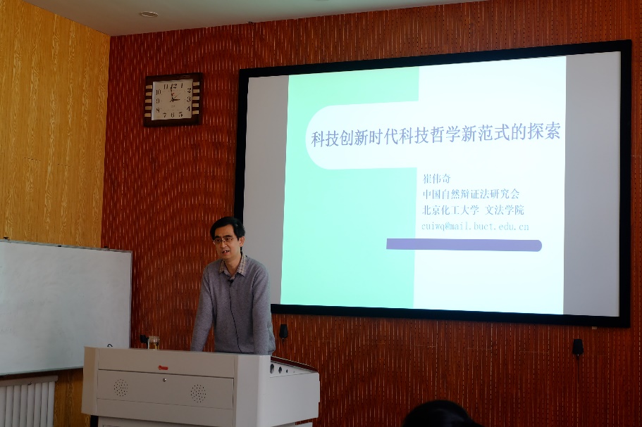 2019年12月12日下午,中国自然辩证法研究会副秘书长、北京化工大学文法学院崔伟奇教授,应邀做客中国科大科技人文讲堂,作题为“科技创新时代科技哲学新范式的探索”的学术报告。本次报告由科技哲学教研部主任徐飞教授主持,科技哲学教研部、人文素质教研部、科技传播与科技政策系师生以及其他院系的研究生参加了报告会。