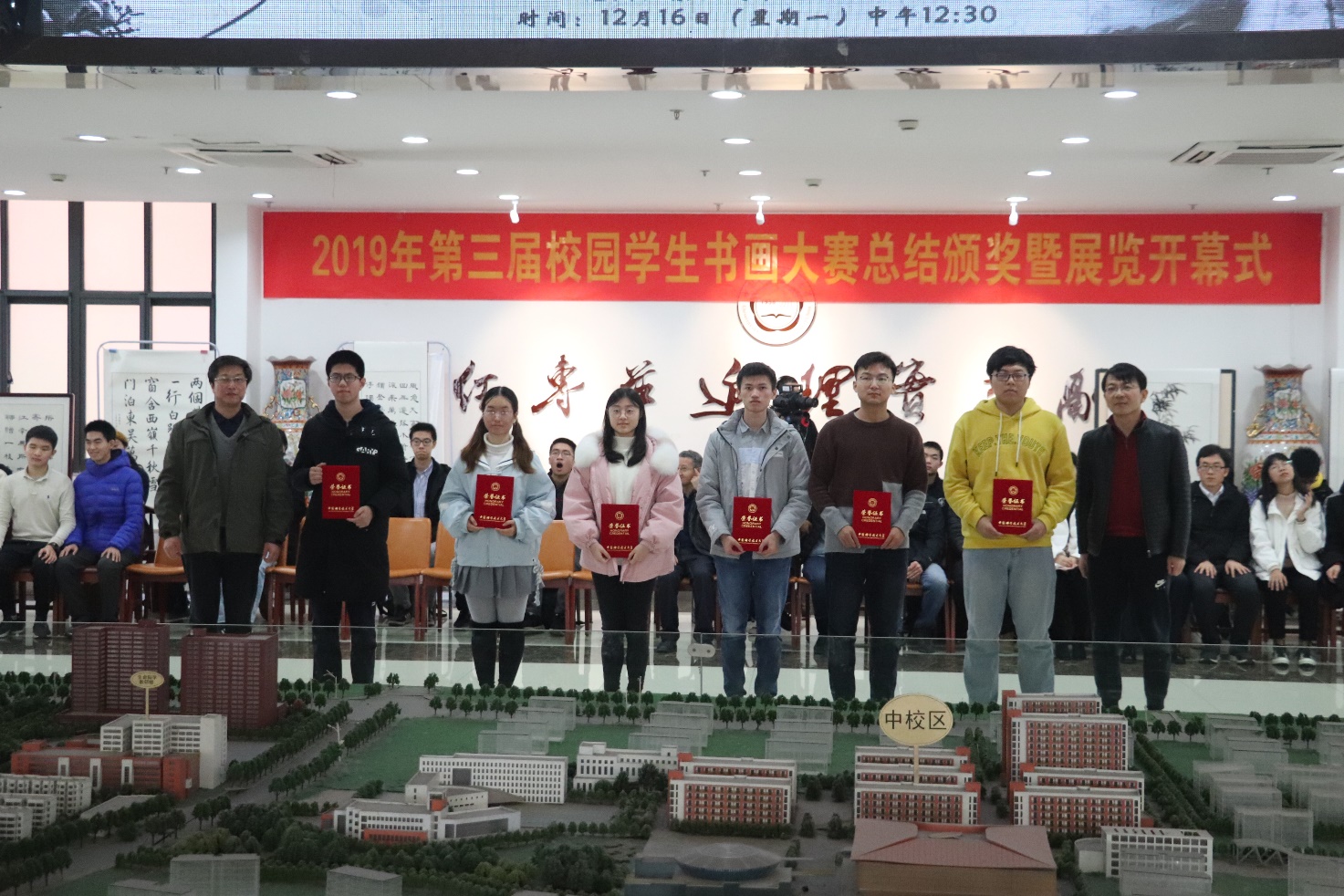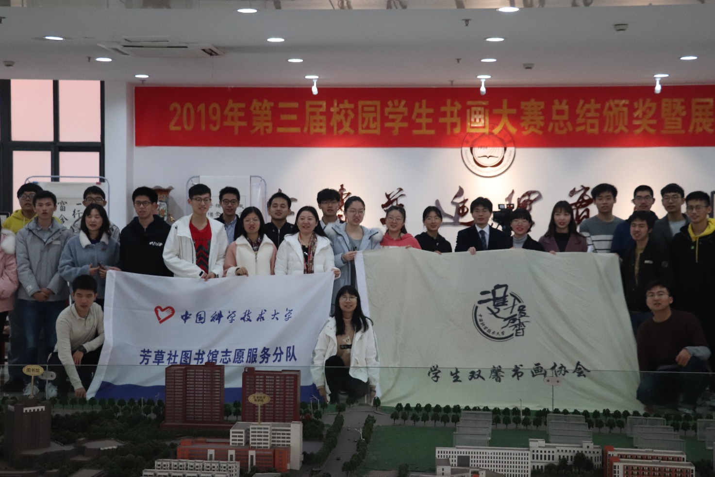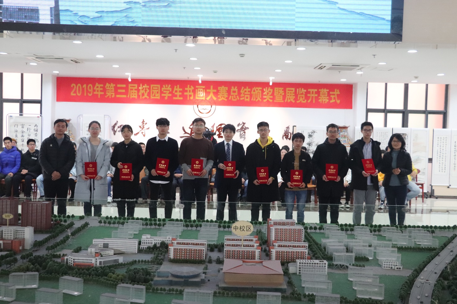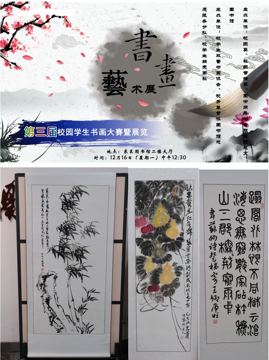 为弘扬书画这一中华民族优秀传统文化,丰富科大校园的文化艺术生活,校园学生书画大赛于近日顺利举行。本次大赛由校团委、社团管指委、图书网络档案联合团总支、图书馆主办,校学生双馨书画协会、校芳草社图书馆志愿服务分队、校学生蜗壳画社联合承办。12月16日,大赛颁奖仪式在图书馆二楼大厅举行。