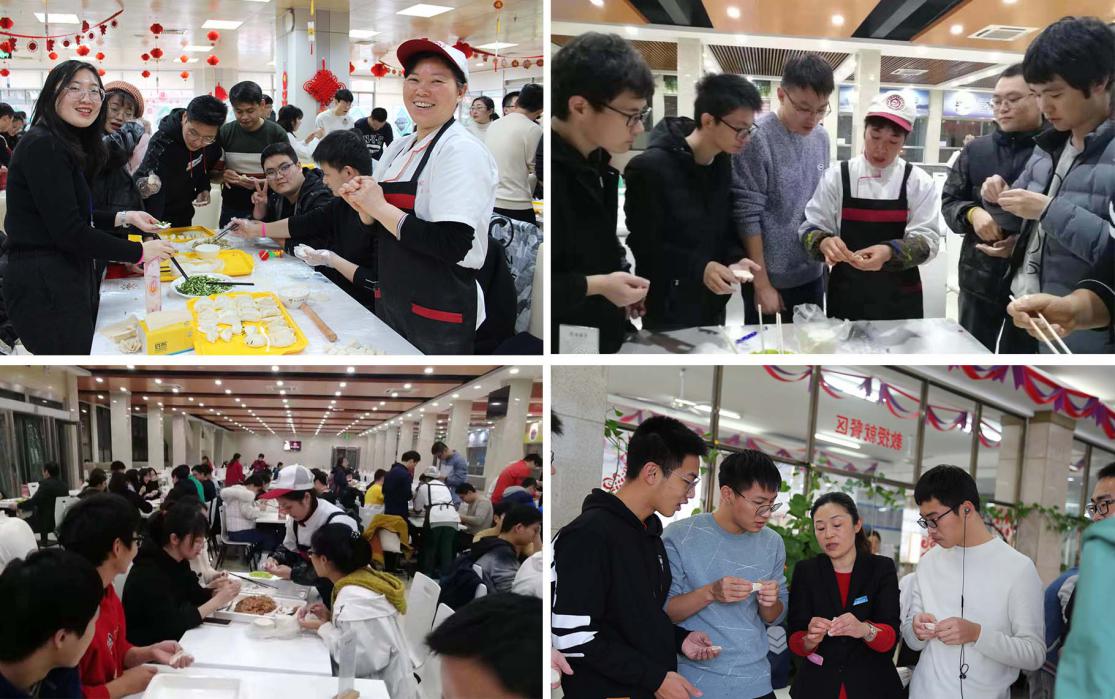 活动开展期间,各区食堂在做好日常餐饮保障之后,工作人员利用中午和晚上休息时间为参与活动的师生提供服务。活动现场,食堂员工加入学生队伍,协助学生擀饺皮,示范教学包饺子,同学们个个干劲十足,包出了形态各异的特色饺子,欢声笑语充满了食堂大厅,场面热闹而温馨。