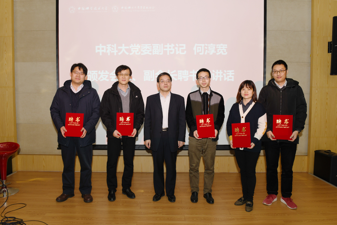 何淳宽代表学校为新当选的会长、副会长颁发聘书,对青年学者联谊会成功换届表示祝贺。他强调,中国科大一直坚持人才强校战略,对优秀人才提供没有天花板的创新舞台,让人才有广阔的发展空间,这是中国科大优秀的传统。他指出,新一届青年学者联谊会要时刻保持忧患意识,使更多优秀的学术骨干和优秀人才脱颖而出,并充分发挥青年学者联谊会在学校教学、科研和管理方面的作用。最后,何淳宽对参会人员致以新年祝福。