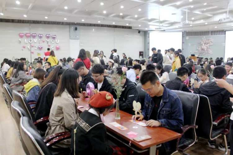 互动中擦出火花,协作中收获情谊。三楼多功能厅的游戏区以“寻宝”为主题,设置了“如约而至”、“一毽倾心”、“明智之举”、“告白气球”、“珠联璧合”和“心有灵犀”等6个合作游戏。一对对嘉宾携手并进,团队协作,凭借自己的智慧和努力赢取积分,兑换奖品。鼎沸的人声,欢腾的笑声充满着游戏区的每一个角落。