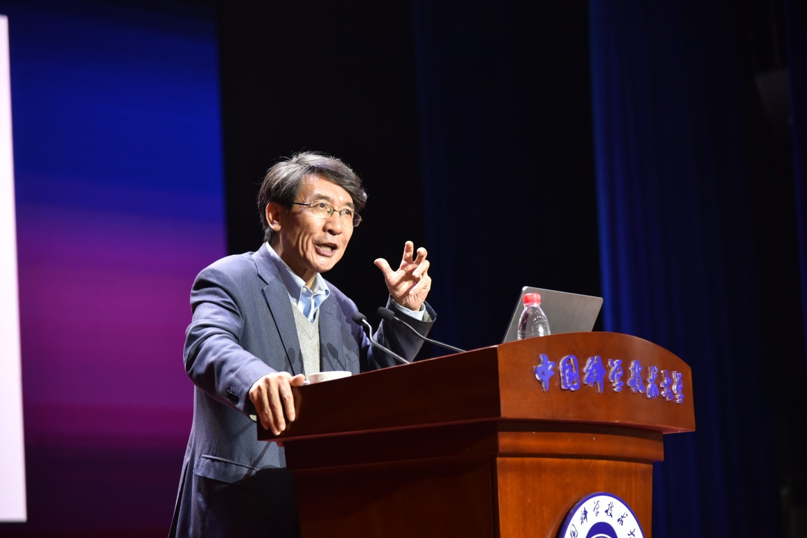 薛其坤院士首先为同学们简析了国内外科技形势。他引述了习近平总书记在十九大上的报告:“经过长期努力,中国特色社会主义进入了新时代,这是我国发展新的历史方位。”并指出我国正面临着重要战略机遇期,但风险与挑战并存,要提高新时代人均GDP仍然任务艰巨。改革开放四十年来,我国技术效率式发展受到阻力,引进开发再创新发展举步维艰,同时,受环境承载能力的限制,资源式发展难以为继。归根结底,是我国自主源头性创新之路尚未完全走通。