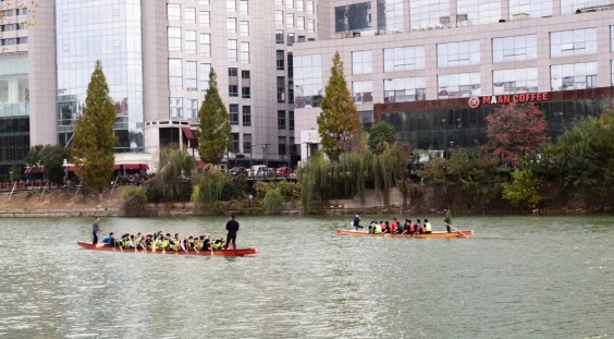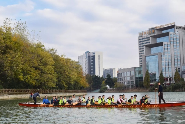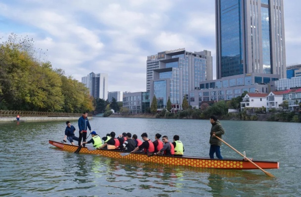 魏乐老师先在体教一楼会议室做理论讲座。讲座包括龙舟起源、龙舟赛事、动作理论讲解等三方面。魏老师介绍了中华传统龙舟和国际标准龙舟的区别,包括正式国际比比赛中使用的两种国际标准龙舟规格;他从传统、商业赛事和正式竞技赛事两个方面介绍了龙舟运动,并结合赛事视频,讲解了省运会、全运会到中华龙舟大赛、中国龙舟公开赛等各个级别的正式赛事;并点评了大学生龙舟比赛中的几支热点队伍。他还从体能和运动技术两个方面简要讲解了同学们平时训练过程中需要注意的事项。同学们结合自己训练和比赛的经历,现场提问并与魏老师深入交流,收获颇丰。