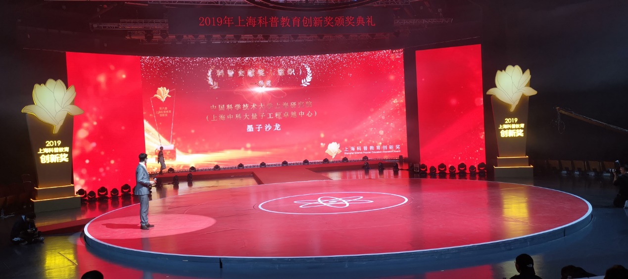 11月30日,2019年上海科普教育创新奖颁奖典礼在上海儿童艺术剧场举行,表彰为上海市科普事业做出突出贡献的个人和组织。中国科学技术大学上海研究院(上海中科大量子工程卓越中心)的“墨子沙龙”项目荣获2019年上海科普教育创新奖科普贡献奖(组织)一等奖。