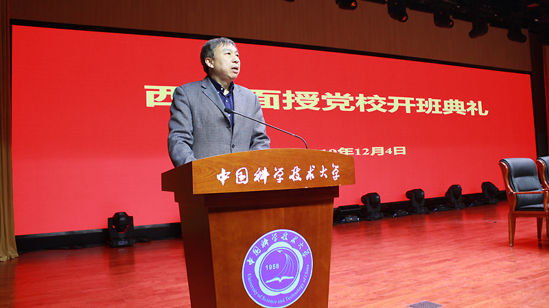 在第二批“不忘初心、牢记使命”主题教育的收官阶段,由中国科大党校主办、信息科学技术学院承办的2019年西区面授党校于12月4日下午在西区学生活动中心礼堂举行了开班典礼,校党委书记、党校校长舒歌群出席典礼并致辞。开班仪式后,党委副书记蒋一,党委副书记、纪委书记毕金初,省委党校吴梅芳教授,安徽大学李明教授分三个时段先后为党校学员作了精彩的专题报告。来自全校多个学院500余名入党积极分子参加了本次党校学习。开班仪式和专题报告会由信息科学技术学院陈卫东书记主持。