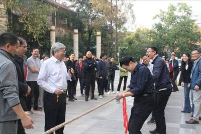 10月17日下午,由机关党委、机关工会共同举办的“不忘初心 牢记使命 庆祝新中国成立七十周年”机关教职工拔河比赛在东区活动中心广场举行。机关各部门组成的7支队伍共70余名教职工参加了比赛,校党委常委、副校长、机关党委书记朱长飞,校党委常委、副校长王晓平,校工会、机关党委、机关工会的负责同志到比赛现场为队员们加油鼓劲。