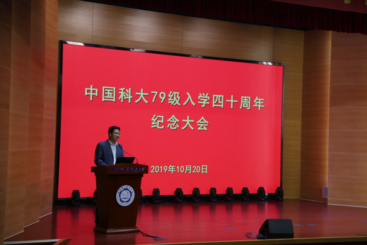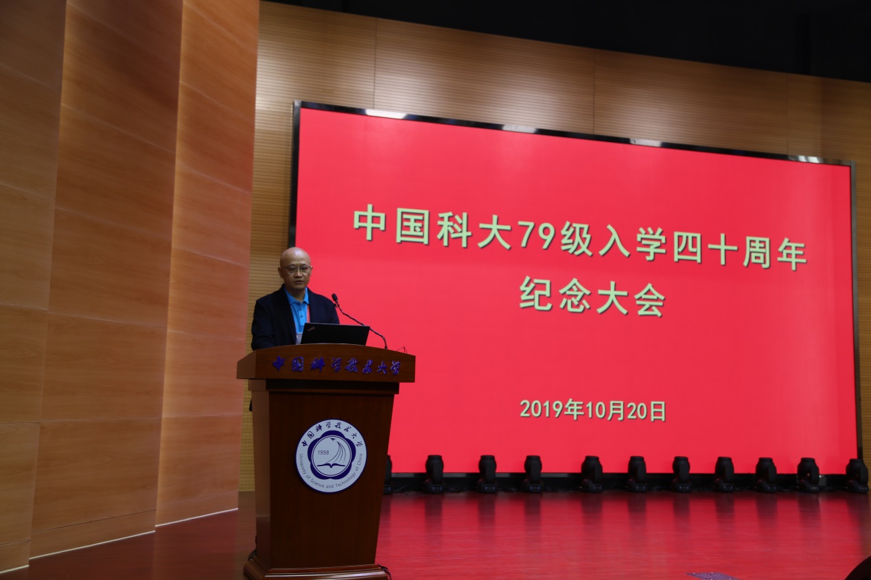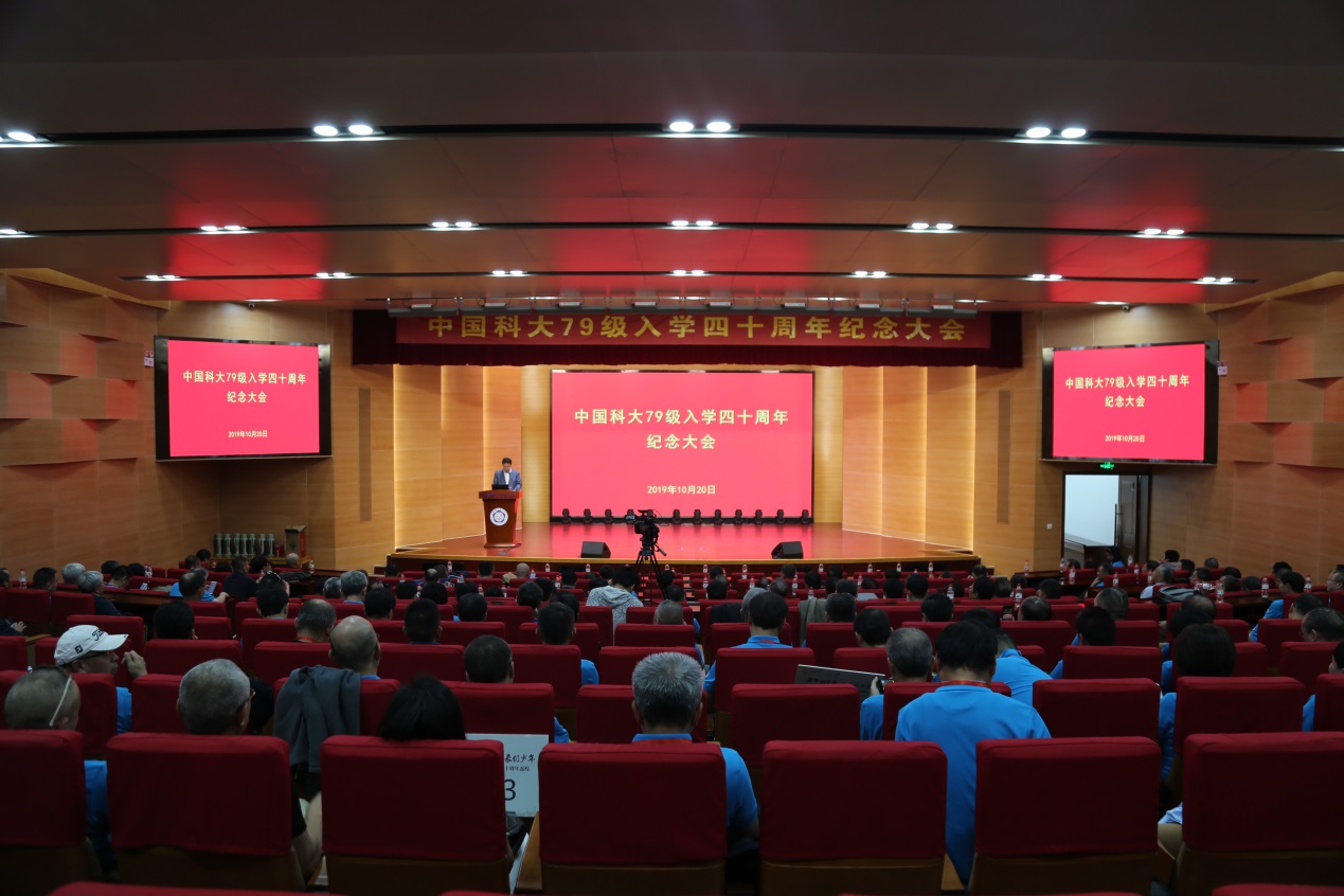 10月20日,中国科学技术大学79级入学四十周年纪念活动隆重举行。本次活动有吸引了9个系170余名校友从世界各地返回母校。上午,入学四十周年纪念大会在水上报告厅举行,大会由797校友王忠主持,校党委副书记蒋一出席并致辞。
