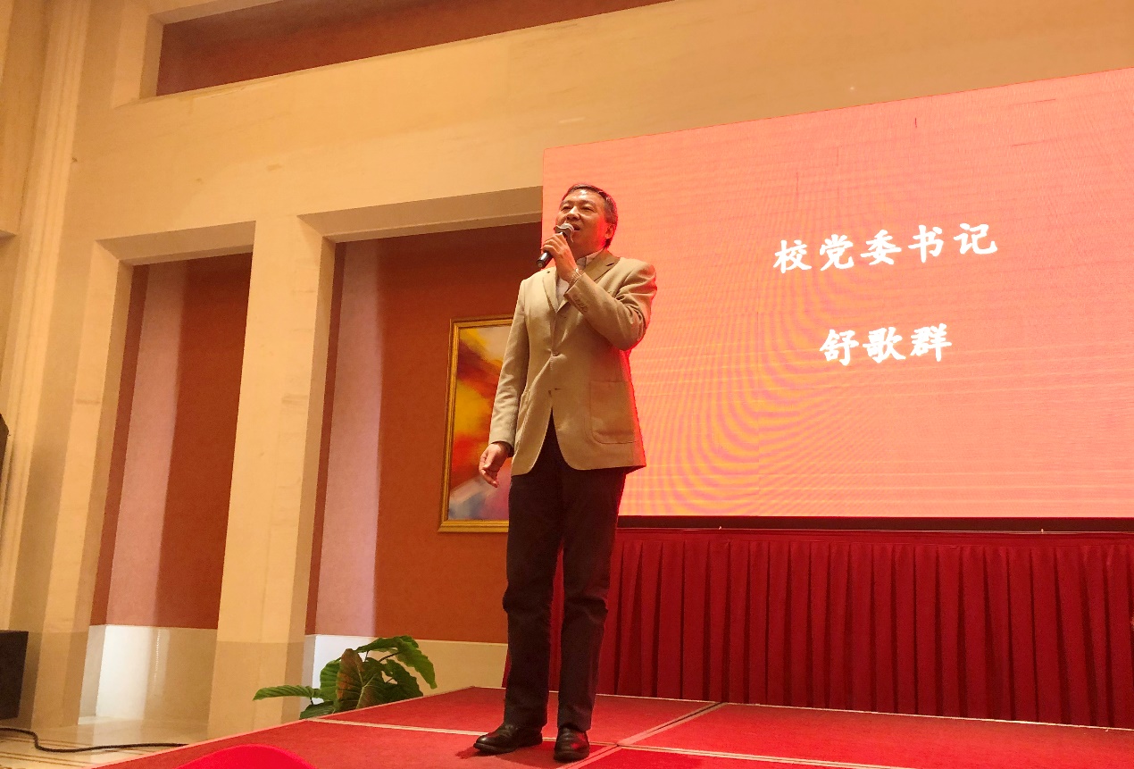 晚间,举行了入学四十周年纪念晚会,校党委书记舒歌群出席并致辞。在致辞中舒歌群书记问候了所有参加本次活动的校友,对校友们长期以来关注和支持母校的发展表示了感谢,并欢迎校友们经常回母校看看。