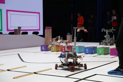 上午9点30分,比赛正式开始,各队展开了激烈角逐。参赛机器人通过红蓝双方竞技方式决出胜负。根据规则,两队机器人要在完全自主运行条件下,在五分钟时间内越过障碍,爬上斜坡,进行物块识别并拿取物块,并到达目标区域,将物块放入对应的目标框中。根据任务完成准确性和用时长短确定胜负。