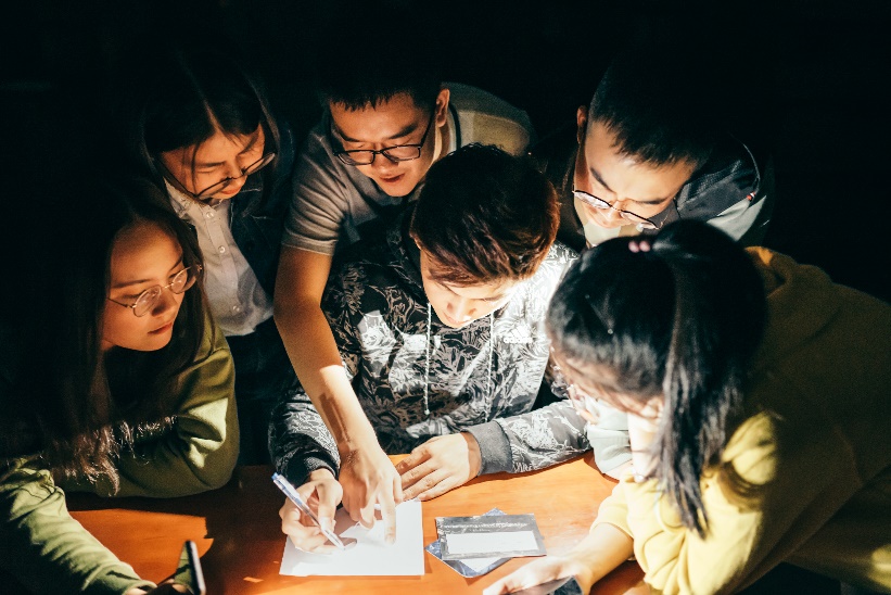 此次活动在全校范围内招募密室逃脱项目组成员,包括命题人员与“NPC”——非玩家(提示人)角色,以便全校范围内群策群力增加活动趣味。最终共有约90多名同学报名参加项目组。其中有30余名同学参与命题,60余名同学担任“NPC”。命题组的同学们精心筹划密室背景、设计线索和问题,“NPC”们仔细检查、完善题目。再结合“天使帮助”环节,活动现场脑洞大开,妙趣横生。