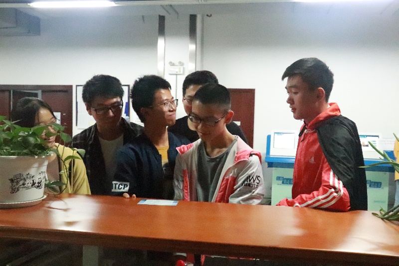 庄严安静的图书馆在这两天晚上异常热闹。有同学在激烈的算题,有同学在哈哈大笑,还有“NPC”为增加氛围搞怪吓人……爱乐协会提供神秘莫测的背景音乐,参赛队伍在漆黑背景中可以感受到肾上腺素激升的刺激,摄影协会的成员在各个书库记录精彩瞬间……