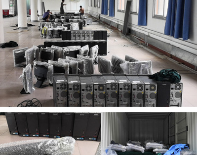在信息与计算机实验教学中心李开弘老师的帮助下,王老师联系物流对捐赠的计算机进行了打包处理,在双方清点数量及监督装车后,捐赠的物资及时运送到孟脑小学。