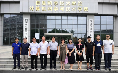 捐赠仪式结束后,参加捐赠仪式的领导、老师和同学在信息学院大门口合影留念,并在王老师的陪同下参观了校史馆。