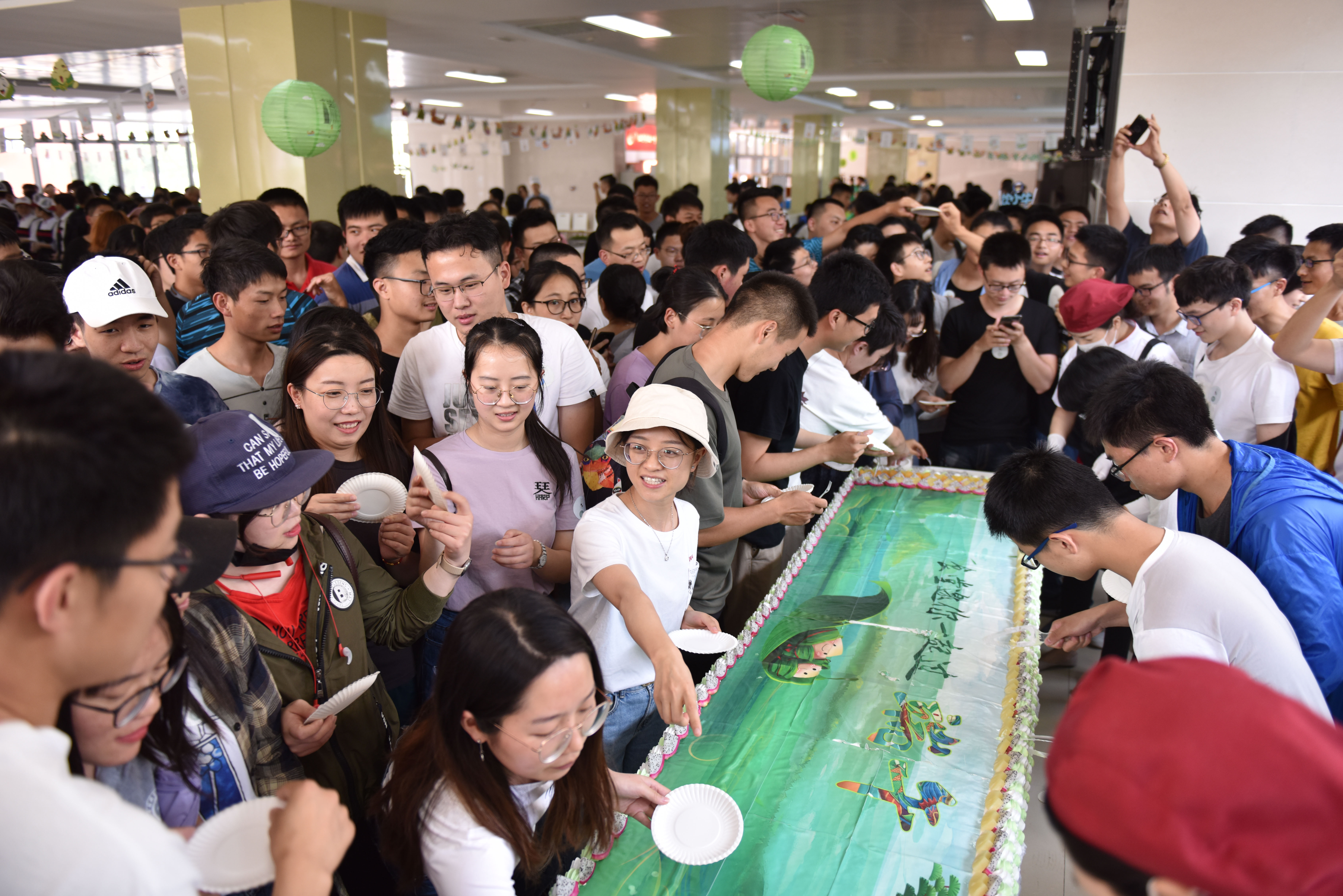 开幕式当天,活动现场人头攒动、气氛热烈。两米五长的端午节定制大蛋糕惊艳亮相,同学们在欢笑声中共同分享了蛋糕带来的美味与欢乐。