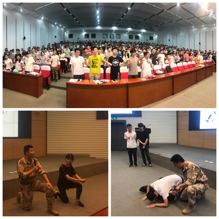 培训会上,我校张榕京教授围绕美国大学研究生培养的目标、职业规划、基本能力等进行了介绍,并就如何做好科研、如何与导师的交流、科研选题、课程学习、国外校园生活等方面进行了详细的阐述。我校黄方教授以自己多年海外求学和工作经历,生动地总结了国内外高校科研的特点与区别,建议大家应能够充分利用国外科研平台和学术交流环境,广泛结识世界一流科学人员,努力提高科研所需的能力,遵循科研的技术路线,开展创新性的工作。中科院心理所研究员、中国心理学会候任理事长韩布新针对留学期间如何应对心理适应期,如何面对压力进行自助和他助进行了现场指导,帮助大家做好留学心理准备,并寄语同学们要避免不正确的留学观念,将本分、尽心、不放弃三个关键词牢记心中。北京德威安保公司教官付俊峰主要从安全意识、防卫技巧、逃生技巧三个方面展开安保实操培训,并与同学们积极互动,模拟了抢劫、火灾、地震等危险情况下应采取的应对措施;我校校医院主任医师邱肃介绍了体检、保险等出国前的准备,以及一些常见病的认识和日常保健知识,并提醒师生们重视身体健康、加强体育锻炼,指导他们如何正确及时就医。我校地空学院博士后赵若灿,与同学们交流学习和科研的心得体会,并以自己参加联合培养的经历,总结了逆商在个人成长中的重要性。最后,教育部出国人员上海集训部周乐介绍了公派留学派出手续办理流程及申办签证的注意事项,并就同学们提出的有关问题进行了详细的解答。