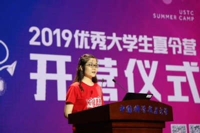 合肥工业大学鲁晔同学代表全体营员发言。她说,中国科大是一所以前沿科学和高新技术为主、兼有特色管理和人文学科的综合性著名学府,有着浓厚的科研学术氛围和优异的创新型人才培养成就,在接下来的几天夏令营活动中,我们要以严格的标准来要求自己,努力与理想并肩,将自己培养成全面发展的新世纪人才。