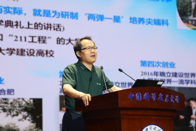 开营仪式后,研究生院常务副院长龚流柱以《创寰宇学府育天下英才——追求卓越的中国科大学位与研究生教育》为题,详细介绍了中国科大总体情况、研究生教育总体概况和招生政策。