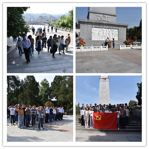 在现场教学中,培训班全体成员在安徽金寨干部学院组织员的引导下,怀着崇敬的心情,首先来到金寨红军广场,瞻仰了“燎原星火”革命烈士纪念塔并敬献了花篮。在革命烈士纪念塔前,大家面对鲜红的党旗,庄严地举起右拳,重温入党誓词。