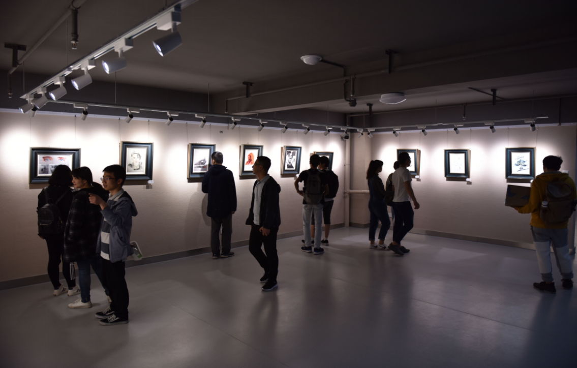 4月22日晚,“2019春季蜗壳画社优秀作品展”首日展在中校区2号楼一楼现代艺术中心举办。人文学院党委书记屠兢、人文素质部主任孔燕、校团委书记杨晓果、教务处副处长马运生以及基础教学中心和图书馆有关老师参加了作品首日展活动,与参展学生亲切互动。