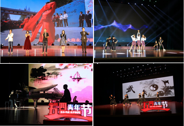 晚会由校团委、校学生社团管指委主办,各学生社团承办,分为“五四的火炬”“初升的太阳”“永恒的东风”三个篇章,寓意“五四的火炬”星火相传,在中国共产党的坚强领导下,青年同学勇做走在时代前列的奋进者、开拓者、奉献者。“六有”大学生“青马计划”班同学们通过《忆五四》情景合唱剧,追忆五四运动的历史,传承爱国核心精神;校学生舞蹈团带来的舞蹈《绒花》,伴随着优美的旋律,同学们用翩翩舞姿诉说着战争年代的青春故事;校学生主持人俱乐部带来的朗诵《那年十八》,从每代青年人的视角讲述中国革命至现代化建设中的革命先烈与人民子弟兵为了祖国的和平安宁、人民安居乐业所做的牺牲与奉献。