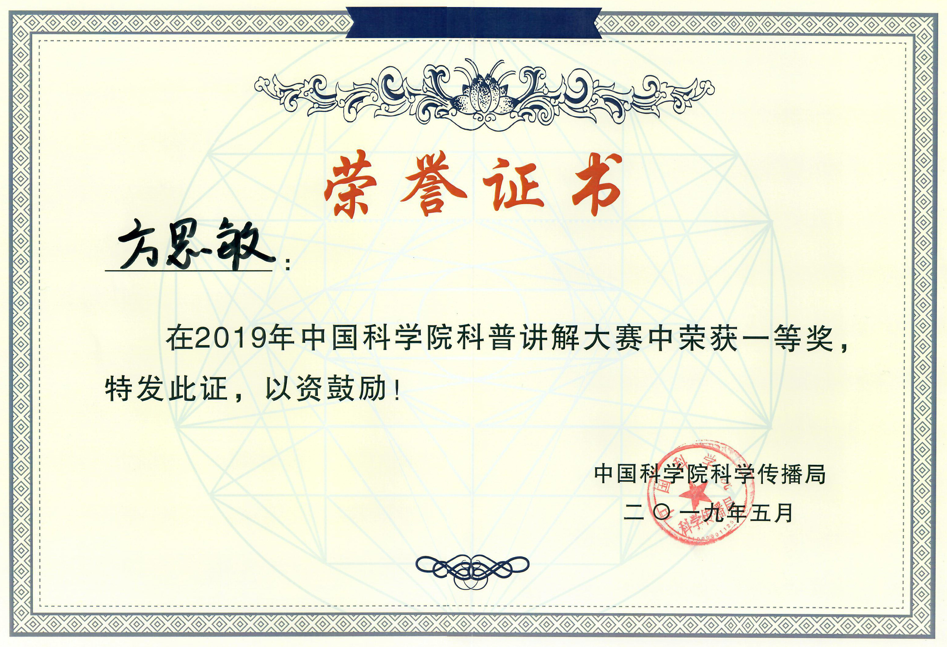我校教师喜获2019年中国科学院第二届科普讲解大赛一等奖