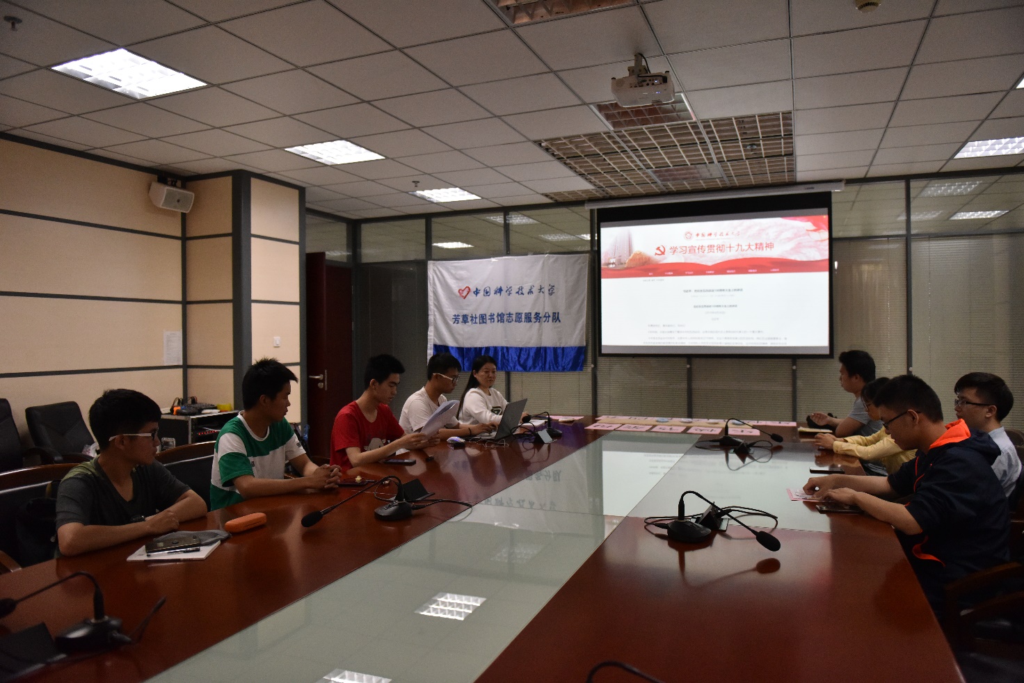 图书馆志愿服务分队集体学习习近平总书记在纪念五四运动100周年大会上的讲话精神