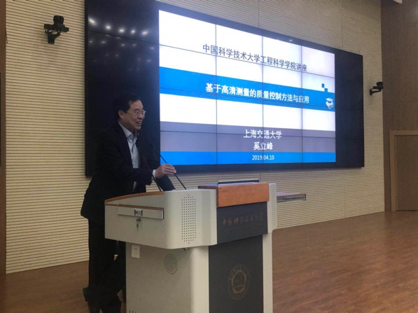 4月10日下午,上海交通大学教授、副校长,中国科大8409校友奚立峰教授应邀为工程科学学院大一本科新生做题为“基于高清测量的质量控制方法与应用”的工程科学前沿讲座。讲座由工程科学学院吴恒安副院长主持,精密机械与精密仪器系党总支书记吴强、系副主任张世武参加报告会。