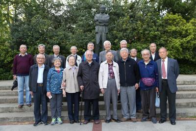 最后,校友们在物理楼、郭沫若广场前合影留念。