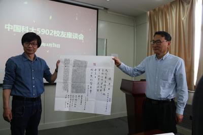 会上,5902校友代表向学校和物理学院赠与书法作品。