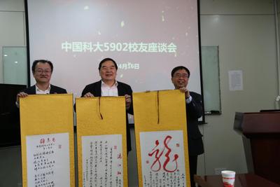 4月16日下午,5902校友在科大东区物理楼五楼会议室举行院系校友座谈会。校长、校友总会会长包信和,常务副校长潘建伟,党委常委、副校长、物理学院执行院长杜江峰,物理学院党委书记兼副院长叶邦角,物理学院副院长王冠中等出席座谈会。座谈会由物理系执行主任林子敬主持。
