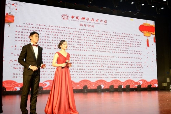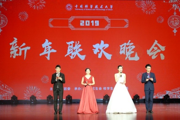 2018年12月31日晚,中国科学技术大学2019新年联欢晚会在东区礼堂举行。校党委副书记蒋一,教育基金会秘书长郭胜利,党政办公室主任王伟,教务处处长周丛照,校团委书记杨晓果,少年班学院党总支书记尹民,数学科学学院党委副书记王莉,化学与材料科学学院党委书记葛学武,生命科学学院党委书记魏海明,管理学院党委副书记芮锋,人文与社会科学学院党委副书记王国燕,火灾科学国家重点实验室学工负责人、团委书记祝玉泉,各机关部处与学院相关负责老师和现场2000余名师生一起观看了本次演出。唐立新教育基金会秘书长刘承红先生应邀出席晚会。