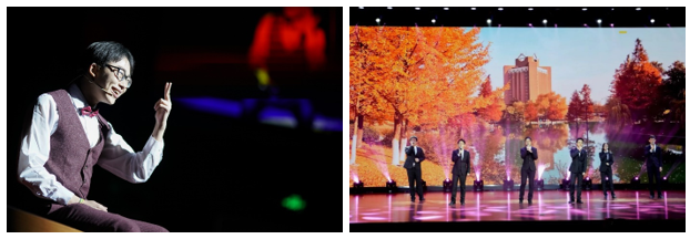 来自魔术社的学子辛巴用他灵巧的双手为科大师生送来了新年的《幸运礼物》,表达了他对母校的感激和祝福。不拘一格、开拓创新是科大人的风采。在科研上我们勇攀高峰,在歌曲演绎上,Cation阿卡贝拉清唱团的同学们也不落俗套,用他们独具特色的清唱表演形式,全新演绎青春洋溢的《自由星空》迎接新年的到来。