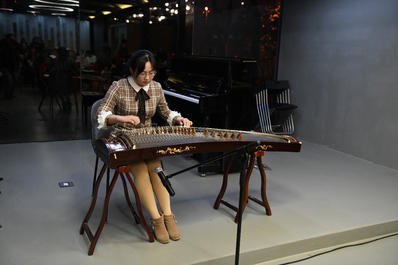 江山同学表演了中国传统乐器古筝,连续两首曲目《洞庭新歌》和《山丹丹开花红艳艳》,令外籍专家感叹中国民乐的无穷魅力。