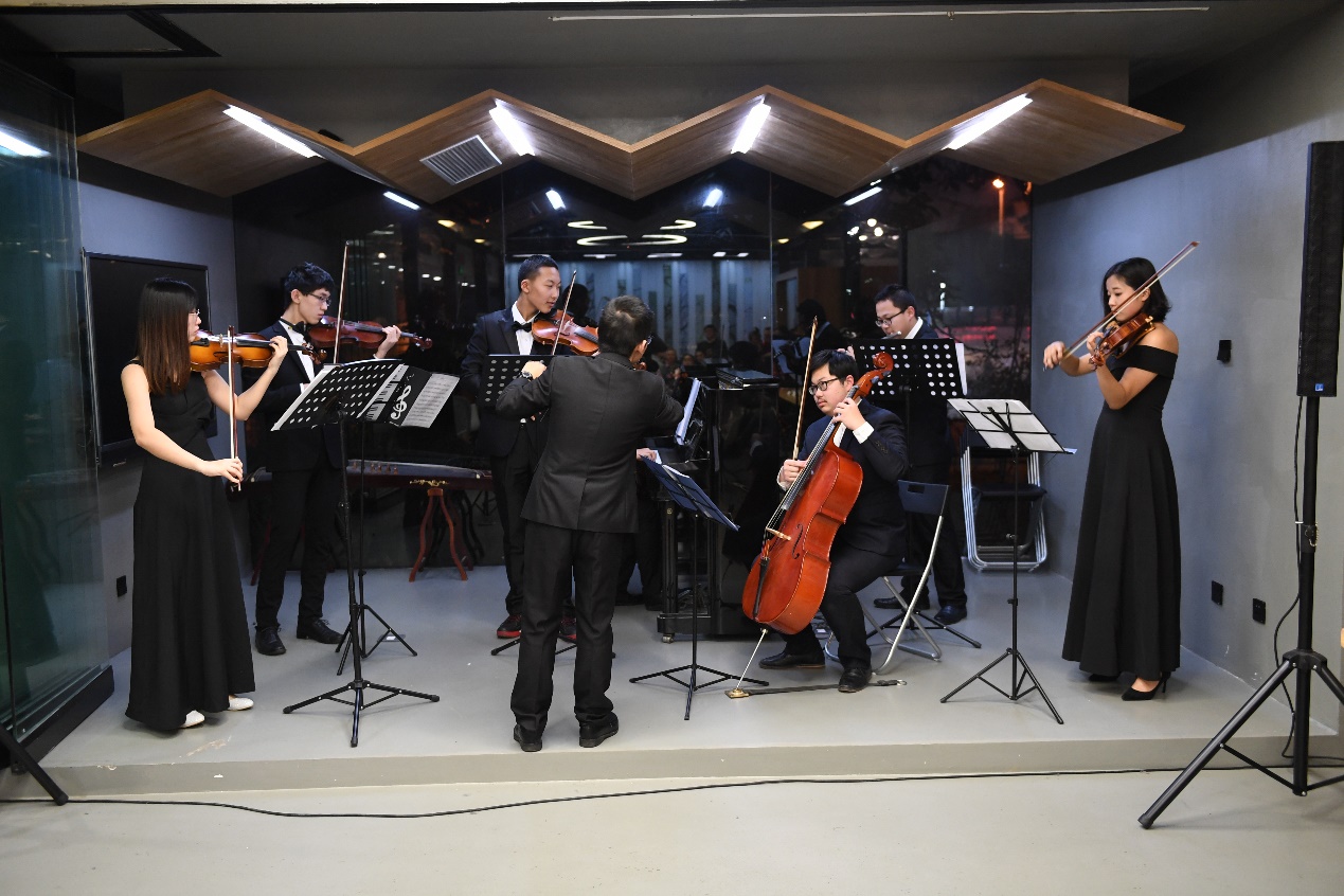 由小提琴、大提琴、钢琴、长笛等组成的小型乐队演奏了《帕拉迪奥》和《g小调柔板》,赢得了阵阵掌声。