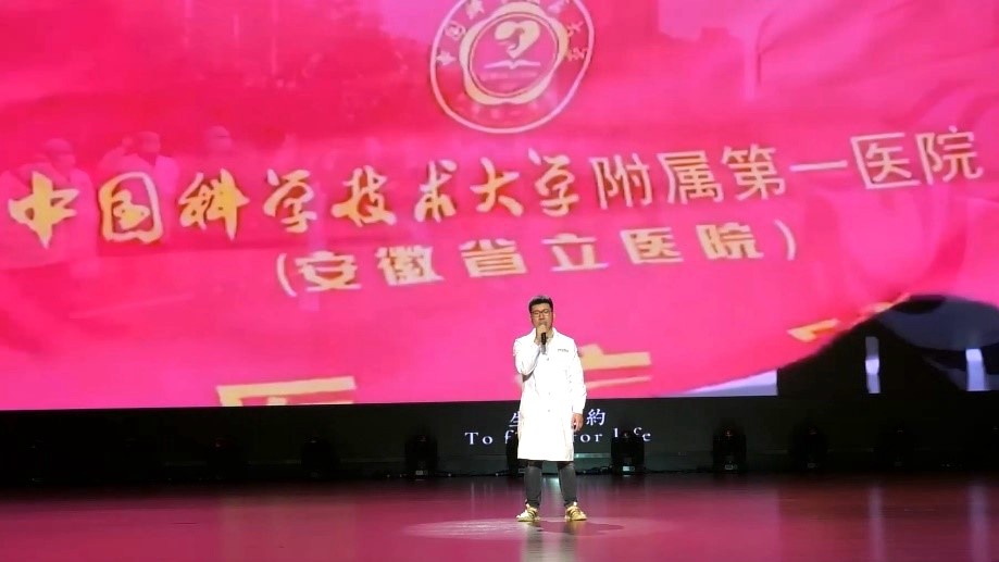 新冠疫情阻击战打响以来,中国科大生命科学与医学部、附属第一医院等陆续向国内外派出医疗专家队和大批医务技术骨干,数百位医务人员奋战在抗疫一线。由附一院胸外科主治医师吴杲词曲创作、专业人士协助打造的原创战疫音乐作品《带你回家》一经发布,好评如潮。本场晚会特别邀请吴杲医生现场登台演唱,动人的歌声弘扬了“敬佑生命、救死扶伤、甘于奉献、大爱无疆”的医者初心,向所有奋战在抗疫一线的医务人员致敬。