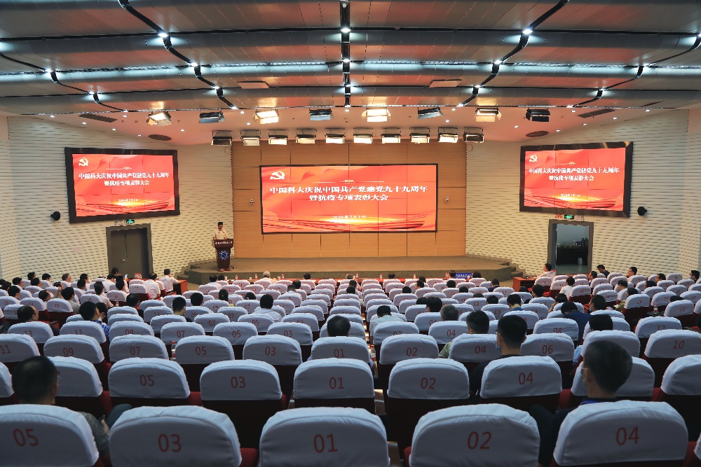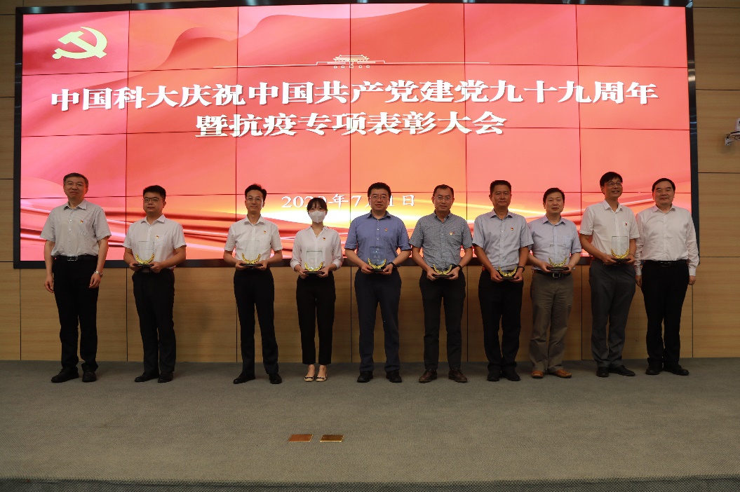 大会第二阶段,举行中国科大庆祝中国共产党建党99周年暨抗疫专项表彰大会。校党委副书记蒋一宣读了学校关于表彰新冠肺炎疫情防控中先进集体和先进基层党组织、先进个人和优秀共产党员的文件。