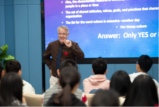 11月11日,风趣幽默、年轻活泼的Edmund Morton老师以自己“洋女婿”的身份和际遇,以及初来中国常被询问的几个典型问题,浅入深出地向大家展示了全球化社会中无处不在的文化冲突,引得在场的观众笑声不断,同时在欢笑之余,又感同身受到了Edmund老师遇到的文化差异。讲座结束后,在场学生纷纷发言与老师交流互动,讲座在生动热烈的氛围中顺利结束。