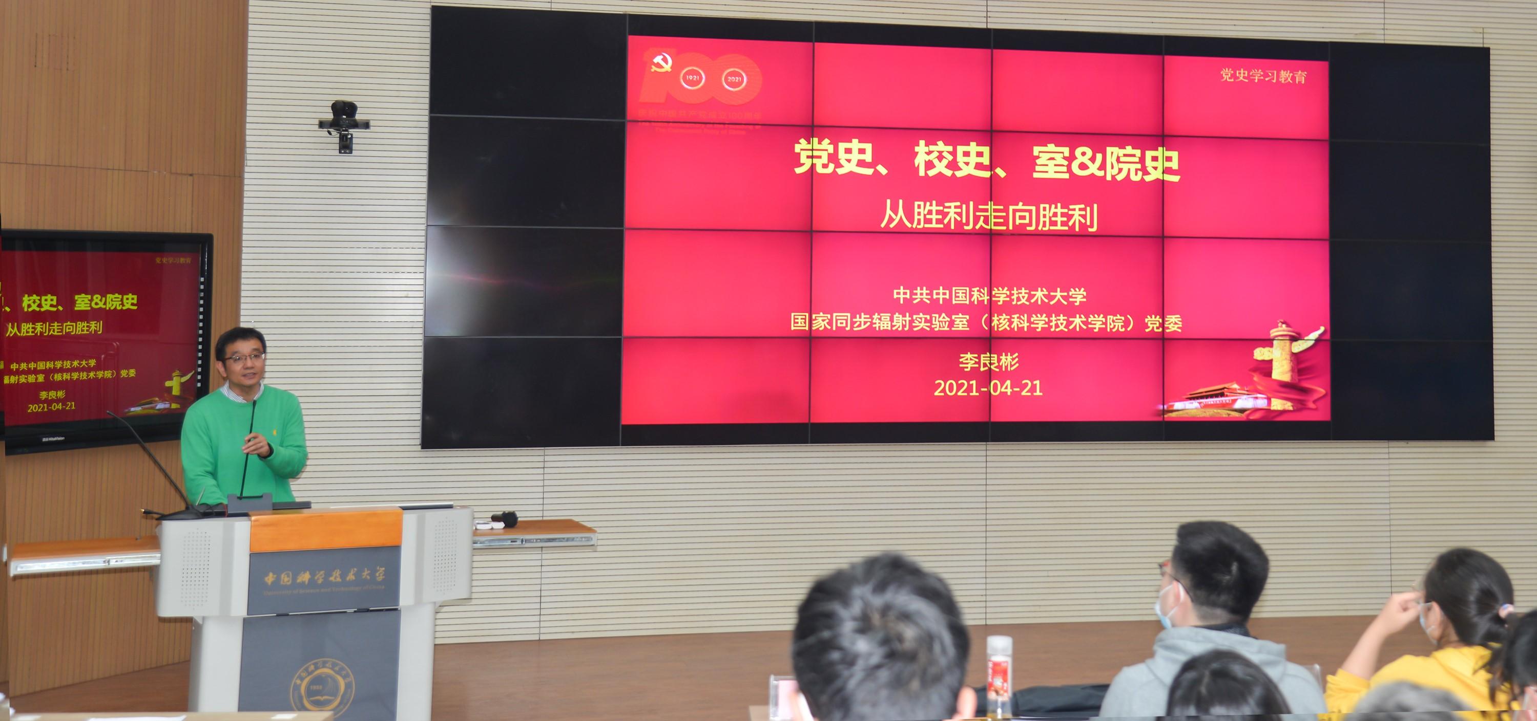2021年4月21日下午,国家同步辐射实验室党委(核科学技术学院党委)在西区第三教学楼举办党史学习教育启动大会,国家同步辐射实验室、核科学技术学院280余名师生党员参加了启动大会。党委书记李良彬做了题为“党史、校史、室史、院史,从胜利走向胜利”的专题党课报告。