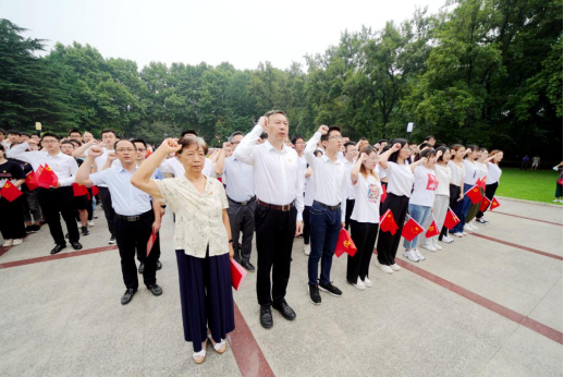 7月1日清晨,我校举行庆祝中国共产党成立100周年升旗仪式。校党委书记舒歌群、党委副书记傅尧、施蕴渝院士、地球和空间科学学院薛向辉教授,相关职能部门负责人和部分院系党组织负责人、师生党员代表、基层团支部代表和自发前来观礼的广大师生校友共400余人参加仪式,校团委书记杨晓果主持仪式。