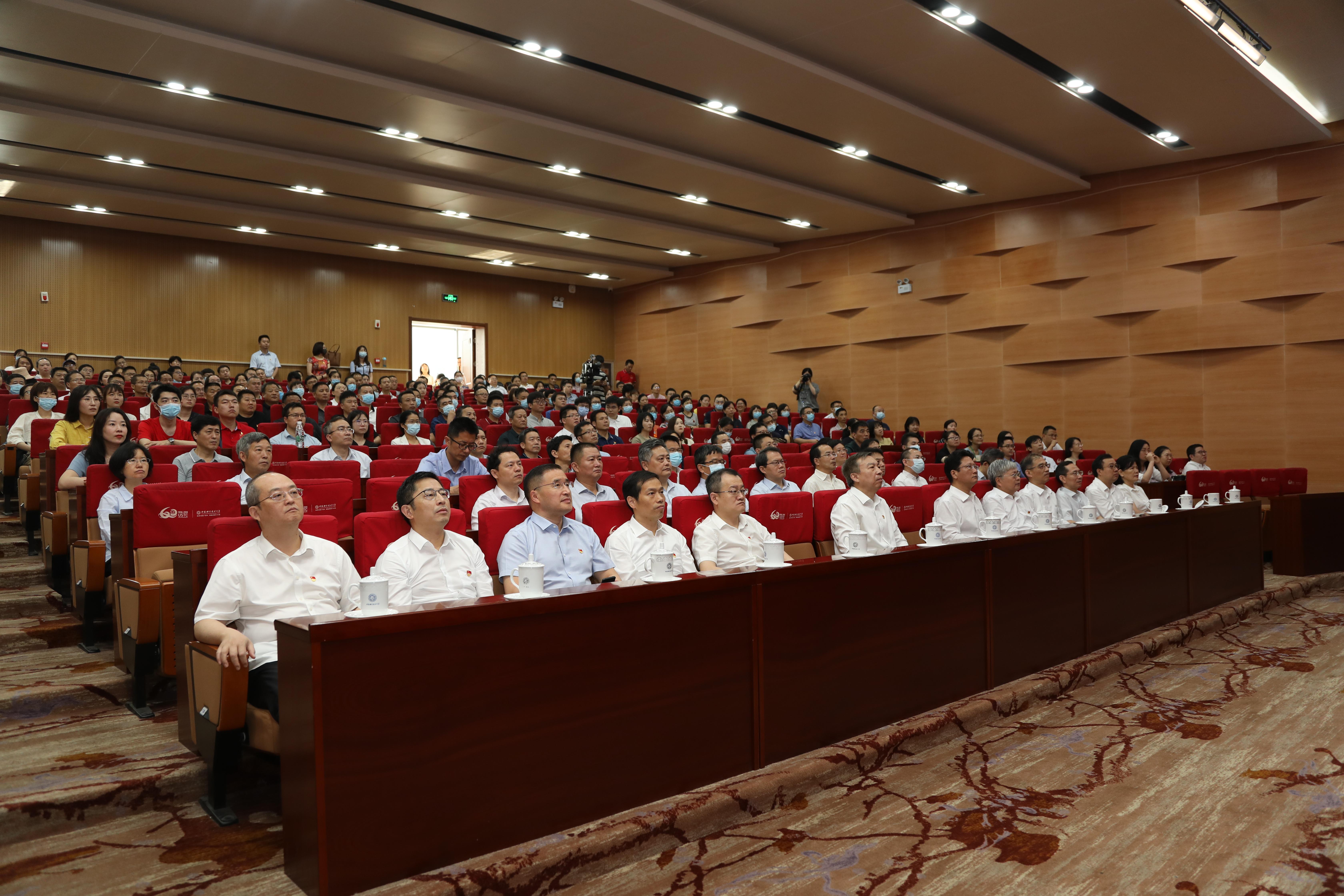在东区水上报告厅,校党委理论学习中心组开展2021年度第十二次集中学习,集中收看庆祝中国共产党成立100周年大会。党委书记舒歌群及其他在校校领导,党委委员、纪委委员,机关部门负责人及机关党委各支部党员共同观看大会直播,认真学习习近平总书记在庆祝中国共产党成立100周年大会上的重要讲话。